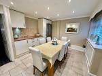 On entering the property, you are greeted by a welcoming hallway leading to an incredible open-plan kitchen and dining area; ideal for lively family meals and entertaining guests. Adjacent to the kitchen is a versatile ground floor bedroom, which is equally suited to those in need of a dedicated study or guest room. A practical laundry cupboard, spacious ground floor cloakroom, and well-proportioned reception room provide everything a thriving household might require.