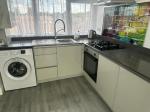 Luxury fitted kitchen with Gloss wall and base units, Granite work surfaces over, electric oven and gas hob over, extractor hood, space and plumbing for washing machine, space for fridge freezer,cupboard housing boiler.