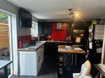 11' 5'' x 15' 2'' (3.48m x 4.64m) Range of black gloss wall and floor units with worktops over. Tiled splashback. 5 ring burner gas hob with extractor over. Built in double oven. Plumbing for washing machine and dishwasher. Stainless steel sink unit with mixer taps and double glazed window looking out to rear garden. Sliding patio door to garden.