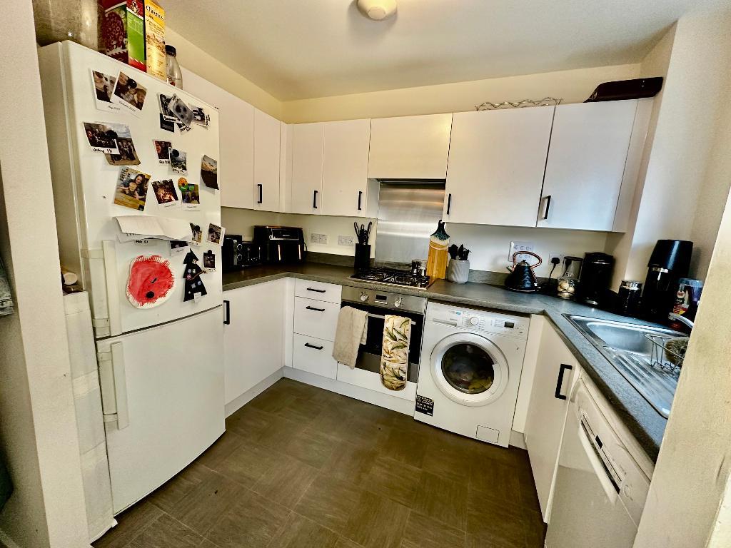 Open kitchen area with a range of white wall and floor units with ample worktops over. Electrolux under oven, with 4 ring has hob above and extractor fan. Stainless steel sink with mixer taps underneath window. Free standing fridge freezer, washing machine with tumble dryer. Space and plumbing for dishwasher. Ideal gas boiler.