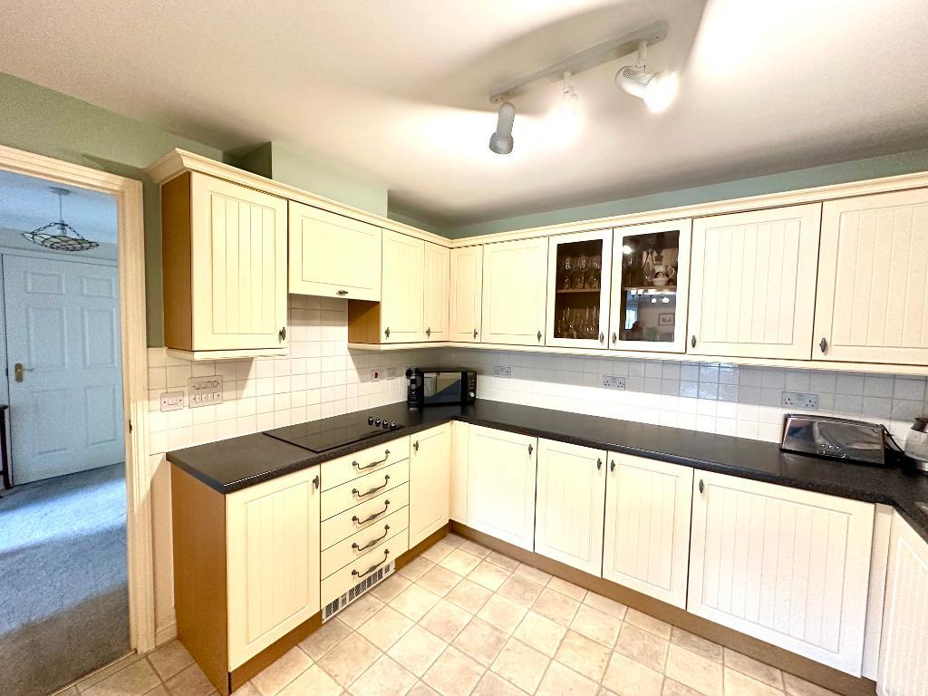 10' 7'' x 10' 2'' (3.23m x 3.1m) Range of fitted wall and floor units with ample worktops over. Stainless steel sink unit with mixer taps. Part tiled walls, double glazed opaque window to side. 4 ring ceramic hob, and electric mid height oven built for ergonomic access. Bosch fridge/freezer and Indeset washing machine. double sliding doors to living room.